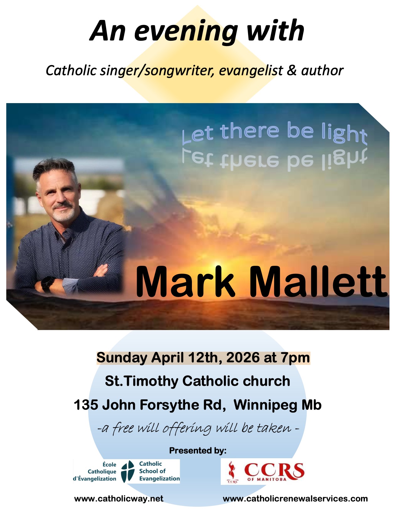 Mark Mallett will be speaking at two events this coming Divine Mercy weekend after Easter in Winnipeg, Canada. See the posters below for details…